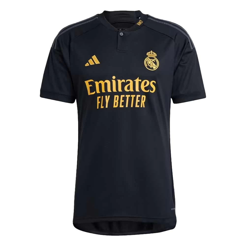 A jersey for supporters of a classy club, made with recycled materials. Soccer elegance. It’s hard to describe, but you know it when you see it. A nod to Real Madrid’s sparkling away performances, the Real Madrid 23/24 Third Jersey keeps things classy with a black base and embroidered “RMCF” wording on the left side of the Henley collar. Sweat-wicking AEROREADY helps to keep you feeling dry, while mesh details add to the comfort for stellar performances on the pitch.