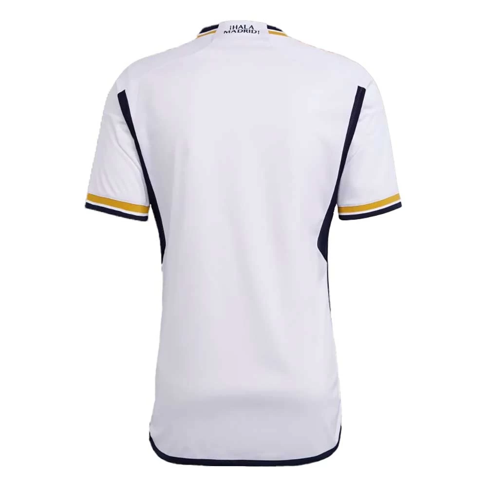 Tradition gets a golden touch in the Real Madrid 23/24 Home Authentic Jersey. Keeping a crisp all-white base, the striking kit continues the thread of powerful design, delivering a sleek, lightweight jersey steeped in legendary soccer history. With a nod to older kits, gold accents from previous kits are re-introduced alongside navy framing.