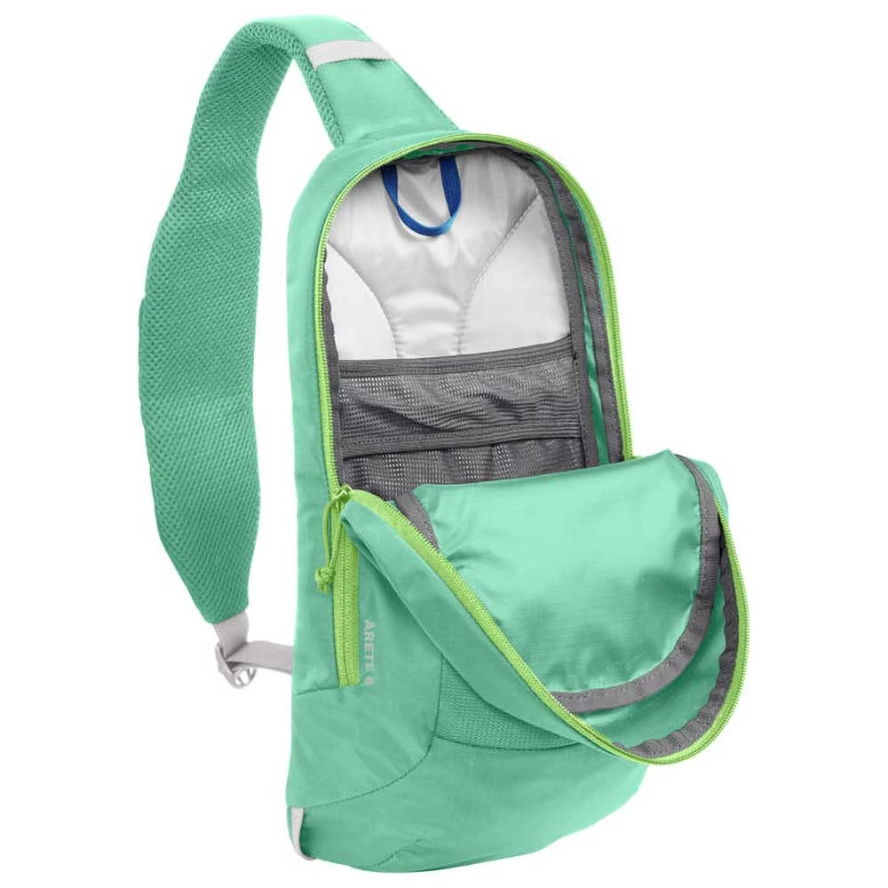 Sometimes you just gotta Sling it. The Arete™ Sling 8, our newest, lightweight addition to the hike pack lineup is the perfect hiking companion. Cross the next frontier with this cross-body sling that includes a .6L Tritan Renew bottle with Carry Cap. 3D Vent Mesh Harness for comfort and breathable back panel ventilates the areas of the body that generate the most heat.