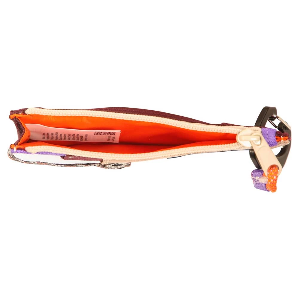 Whether you’re headed to work, the gym, or the mountains, the Clipper Card Case is a great every day wallet. Slots for all your cards, an exterior ID window and a main zip compartment to store cash, make this wallet KAVU days approved. Complete with a metal carabineer clip key ring to keep your essentials safe and secure to whatever you choose. Double sided wallet with metal carabineer clip key ring, one main zip compartment with rope loop zip pull, exterior ID window slot and card slots with pattern webbing strap and snap closure