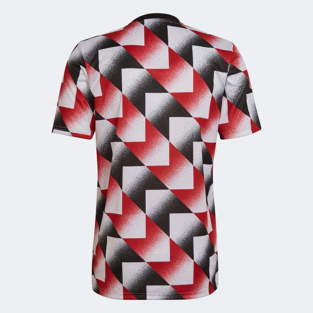A collision of club colors and a classic adidas design. Starring on the pitch before kickoff, this soccer jersey helps Manchester United players prepare for games. AEROREADY absorbs moisture to keep them fresh for when the real action begins. A woven badge adds the perfect finish. Made with 100% recycled materials, this product represents just one of our solutions to help end plastic waste.