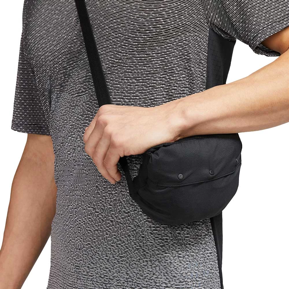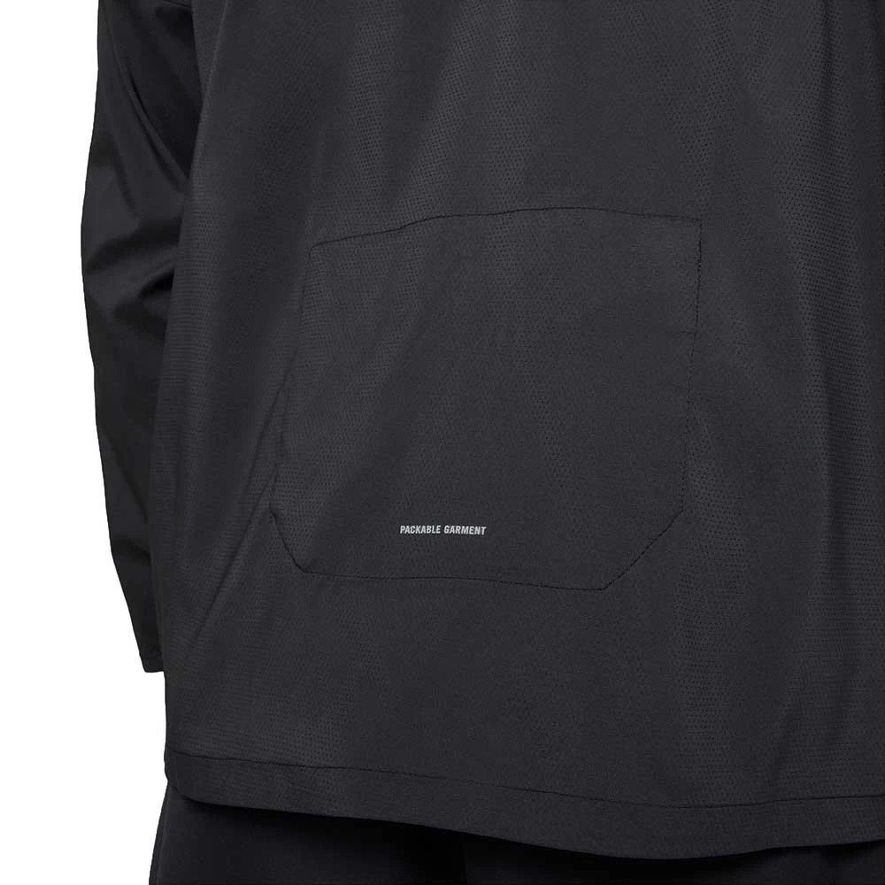 The jacket can be packed into the back panel pocket when you need to layer down. An over-the-shoulder strap lets you easily carry the garment when you’re on the go.