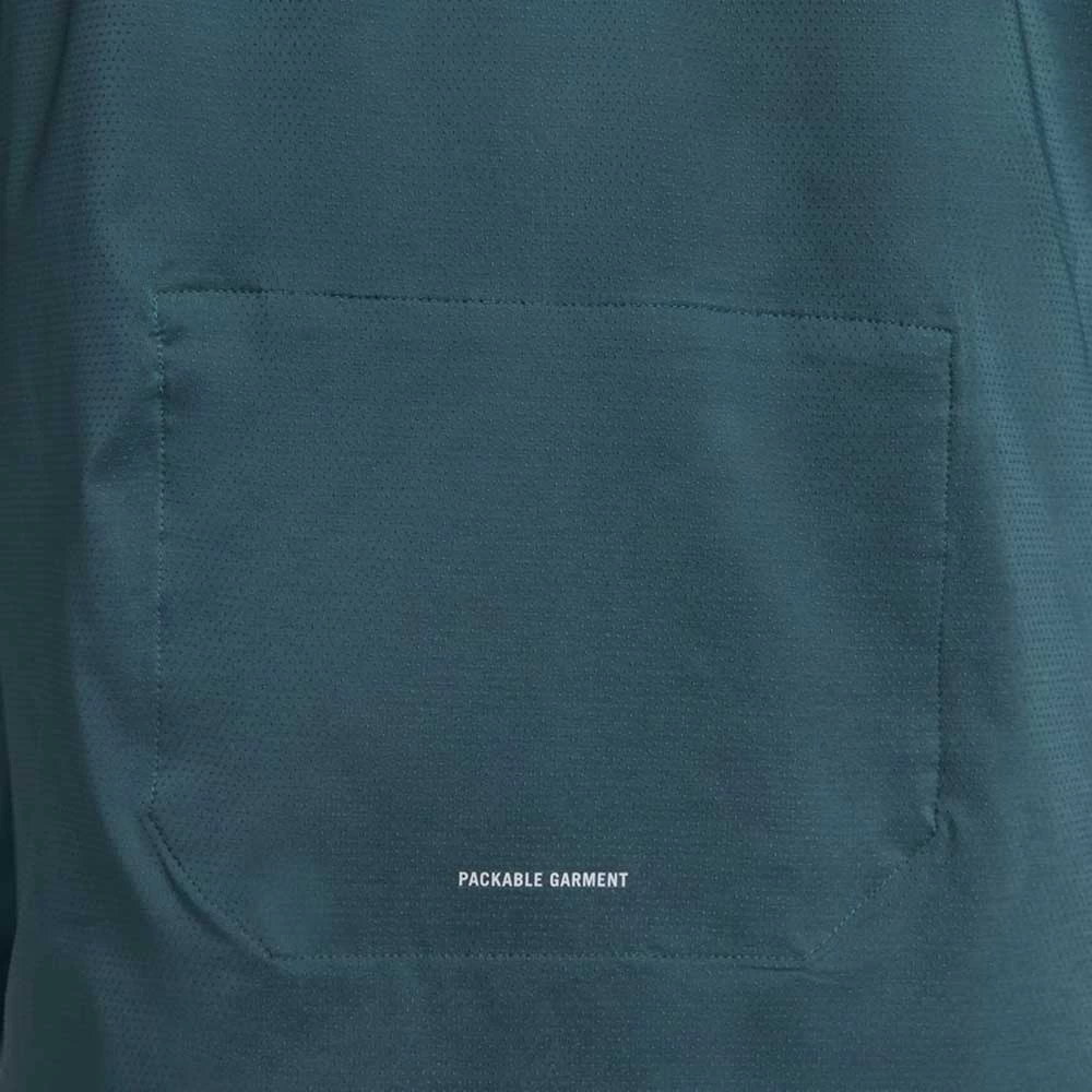 The jacket can be packed into the back panel pocket when you need to layer down. An over-the-shoulder strap lets you easily carry the garment when you’re on the go.