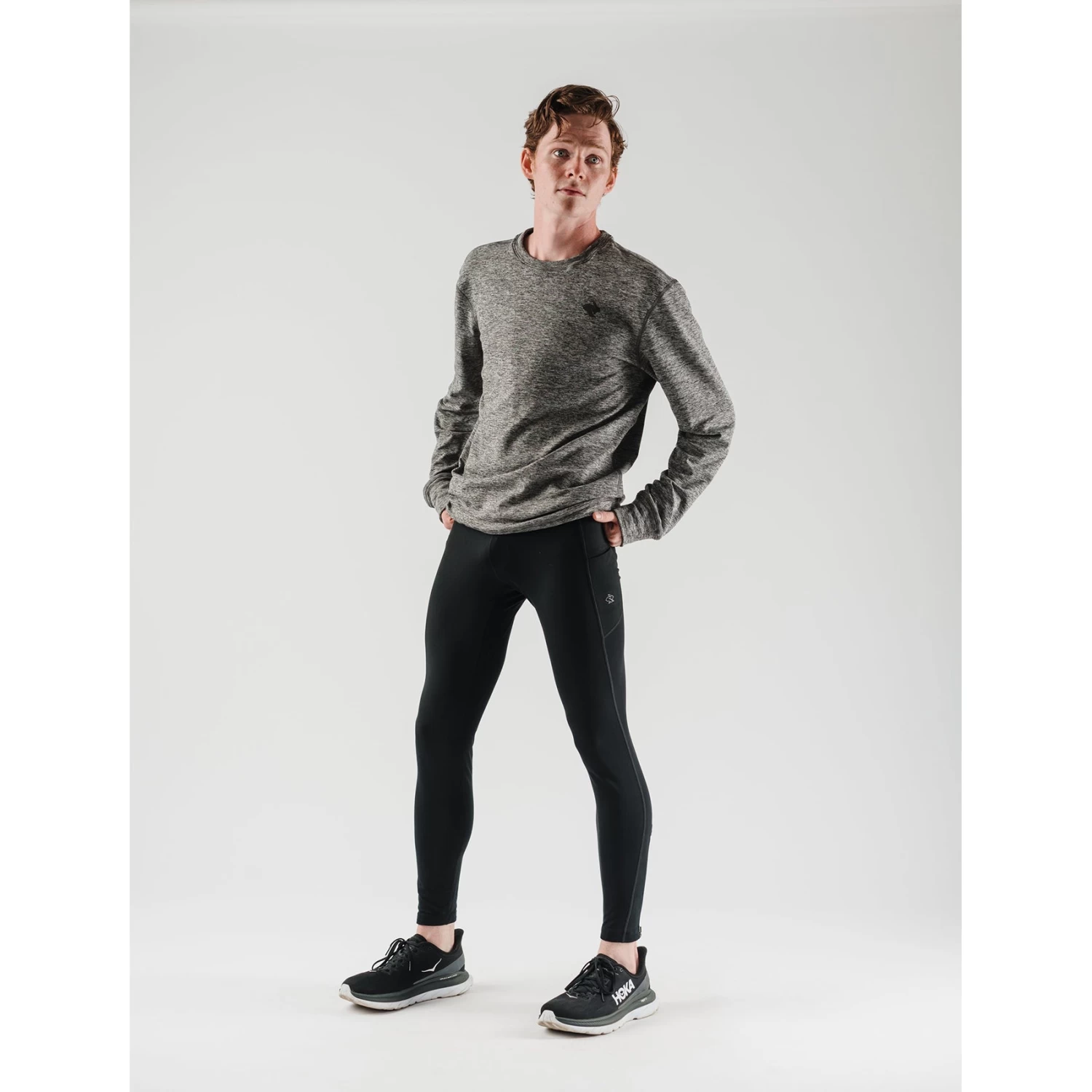 Finally a men’s fleece tight with pockets galore. Keep legs warm on cold days. Internal drawcord provides a secure fit. Features two hip stash pockets and back center zip pocket all large enough to fit most phones. Reflective seams for high visibility. Ankle zippers for easy on/off. Made with 76% polyester and 24% spandex.
