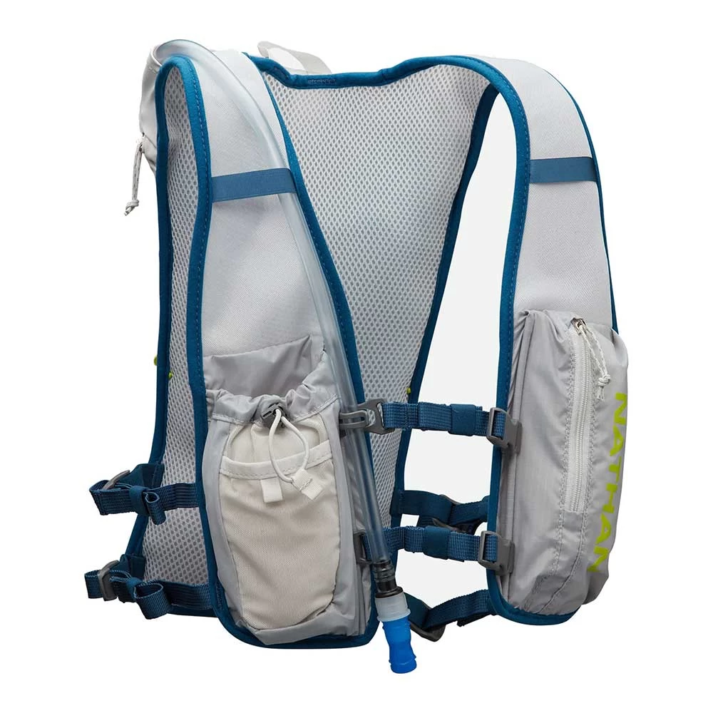The essential Quickstart 2.0 6 Liter Hydration pack with two back storage pockets designed for the short to moderate road and trail running, and other sports.