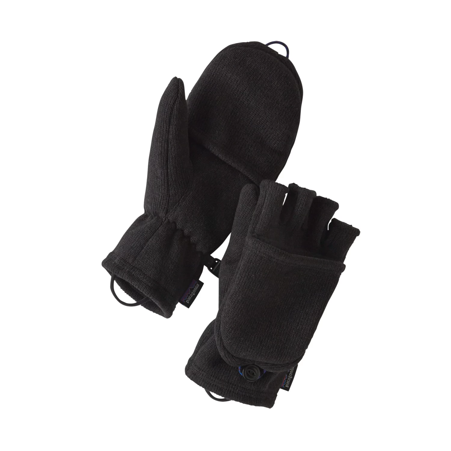 Warm and cozy mittens that convert to fingerless gloves designed for multipurpose sport or casual activities, made of sweater-knit recycled polyester fleece.